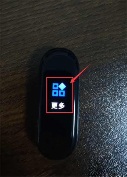 1、第一步,先把手环屏幕点亮,然后上下滑动,找到那个“更多”的菜单。