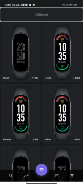 给手环玩腻了官方表盘的兄弟们安利个好东西。不得不说,系统自带那几个确实不够看,用久了审美疲劳。最近体验了一款名为“Mi Band 6 Watch Faces”的专业表盘资源应用,其内置的丰富内容给我留下了深刻印象。。这个应用囊括了动画、天气、赛博朋克等各式主题,确保你能从中找到符合个人喜好的那一款。。它还支持按各种条件筛选,找起来很方便。这工具不占地方,运行也流畅,纯粹就是为了换表盘而生。