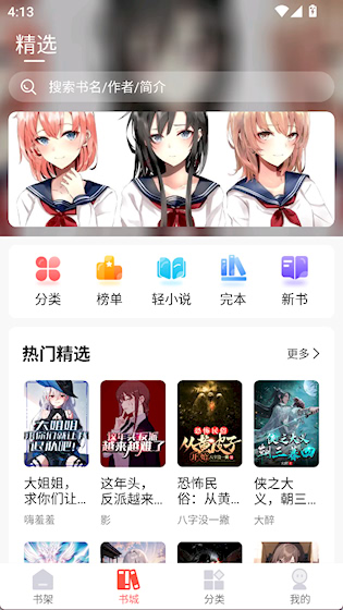 1、打开App就能看到书城,可以随便逛逛,也可以直接搜你想看的书,点进去就行。