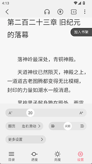 5、整个App的操作逻辑很简单,从找书、加书架到阅读设置,整个流程下来特别自然。就算是第一次用这类App的新手,也能马上搞明白怎么用。