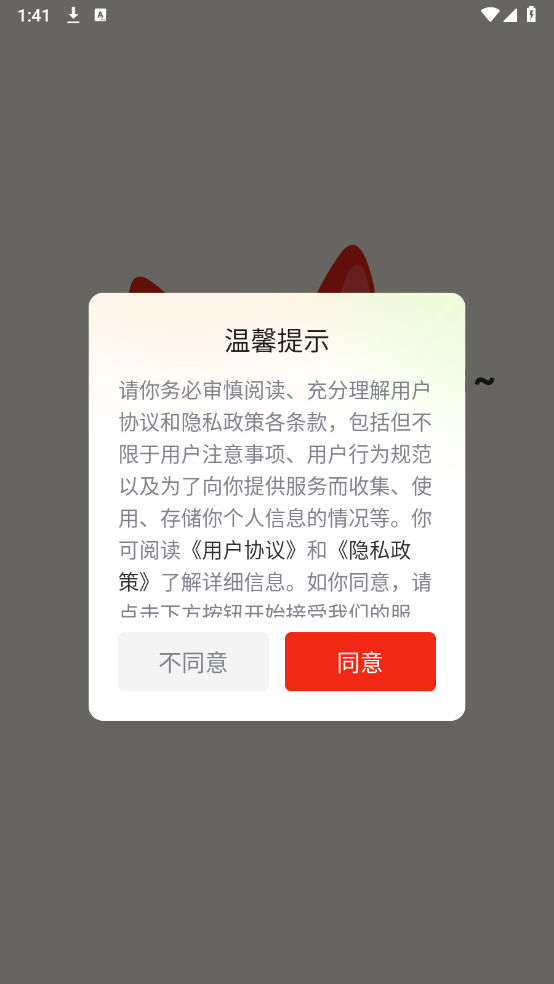 1、先把呜噜呜噜这个app下好,第一次打开嘛,会跳出来一个用户协议让你同意,直接点同意就能进去了。