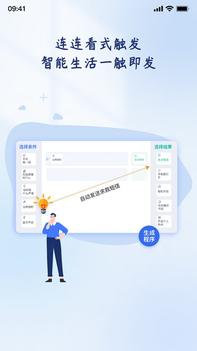 4、通过轻连APP连接所需条件与动作,仅需简单操作即可完成程序创建与控制设置。