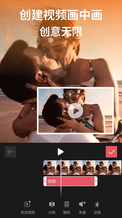 - 这个功能就是在一个视频画面里再叠一个视频,玩法很多。