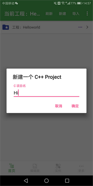 点一下,会弹个框让你给项目起个名字,输完点【确定】就行,一个新项目就建好了。