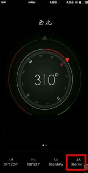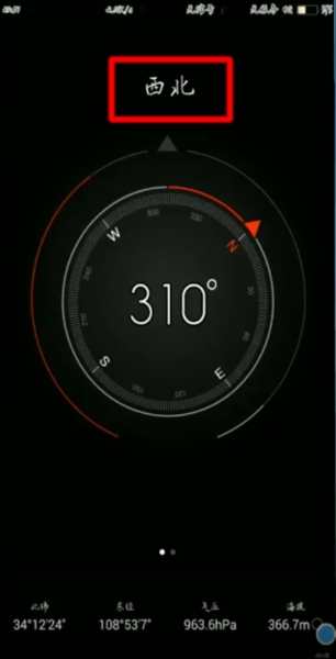 2、页面上半部分显示的信息,就是你手机当前正对着的方向。