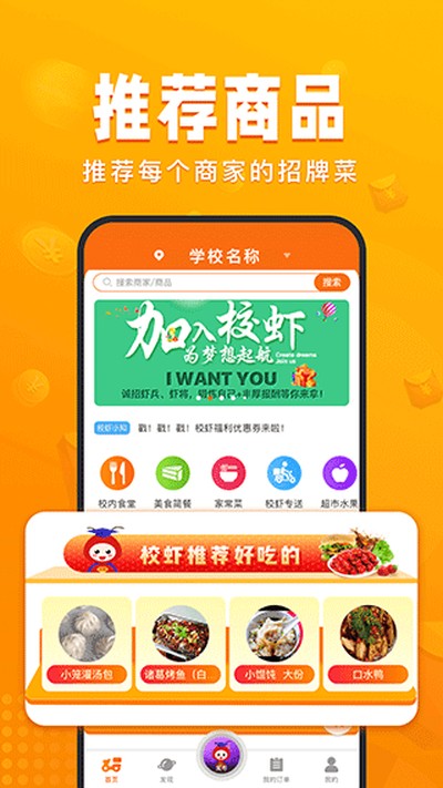 校虾是一款专为大学生设计的校园生活服务App,提供外卖、跑腿代买、二手交易、失物招领等功能,旨在解决大学生在校期间的各种生活需求,让校园生活更便捷高效,轻松便捷。