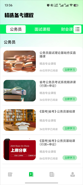 1、刚打开公务员之家app,主页上就是满满当当的题库,看下面这张截图就知道了。