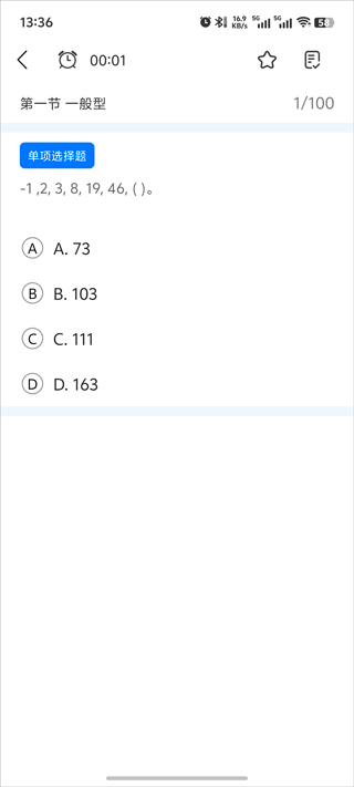 3、点进去就直接开干了,上面还有倒计时,模拟真实考场的感觉。一共100道题,看到截图里这个界面没。