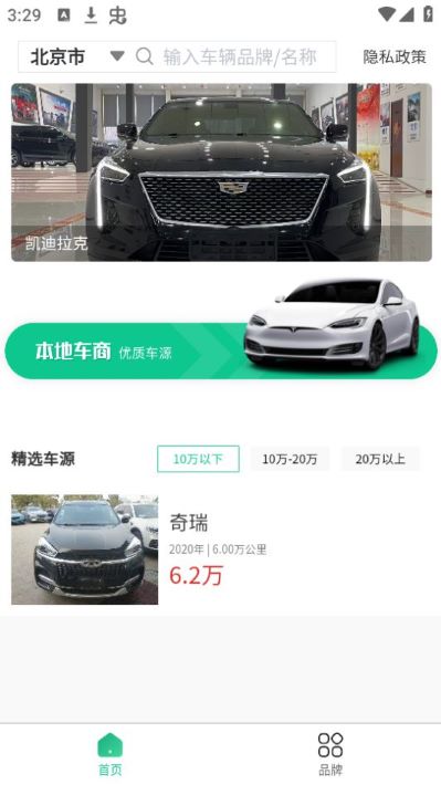 它会优先给你推你所在城市的车源,这点很贴心,毕竟买二手车谁也不想跑太远去看车,方便太多了。