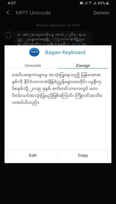 3. 关联功能做得不错,Sanpya和Zawgyi这两个主流字符集都支持得很好。