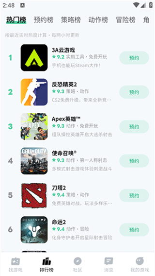 2、如果首页里没有找到也可以前往“排行榜”中查看,按照分类或榜单找游戏也是最方便的方式之一。