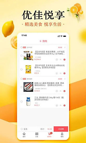 1、先在手机上装好官方版的优佳悦享,打开App。主界面挺常规的,底下就四个按钮:首页、分类、购物车、我的。上手没啥难度。