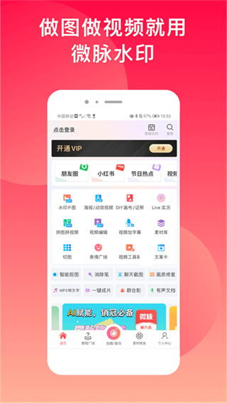 1、打开微脉水印相机app后先完成登录再才可以进入首页查看各项操作。