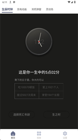 1、生之钟和对应的时间设定会让整体都多出了一点宁静式的提醒感,不只是单纯看数字变化也更加定下心安排目标和接下来的生活方式;