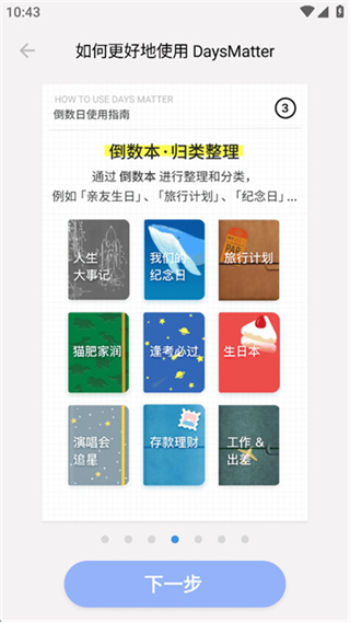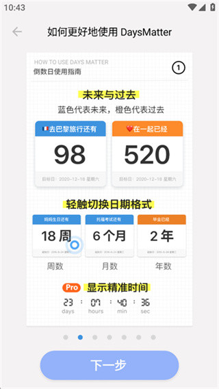 1、日期类型有倒数日、正数日和周期日可以根据不同的纪念日选择记录,是想看还有多久或是已经过了多久都可以更方便;