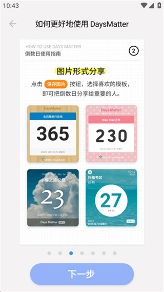 2、多个日期可以添加到桌面上让其打开手机就能够直接看到提醒,各类的重要日子也会更容易一直记在心里;