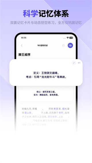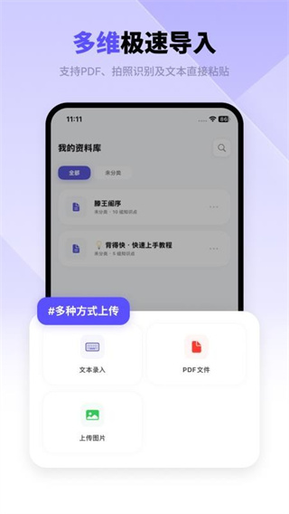 背得快是一款高效又实用的智能学习工具软件,适合日常背书、记知识点和巩固记忆,可以很快整理出零散的内容,生成清晰的思维导图,形成完整的记忆框架,看一眼就更容易理解,智能挖空功可以会圈出重点内容,把核心考点和关键信息展示出来,方便集中记忆,还可以选择不同的题型来练习,在刷题过程中加深知识的印象,让记忆更牢固,内容排版也很清楚直观,知识点一看就懂,减少记背的压力,用更科学的方式安排学习节奏,让背书更轻松,帮助一步步提升记忆效率。
