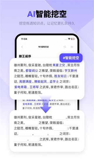 2、会自动把关键的内容留空,需要自己填来帮助记住重点;