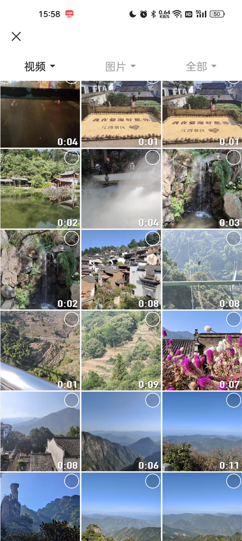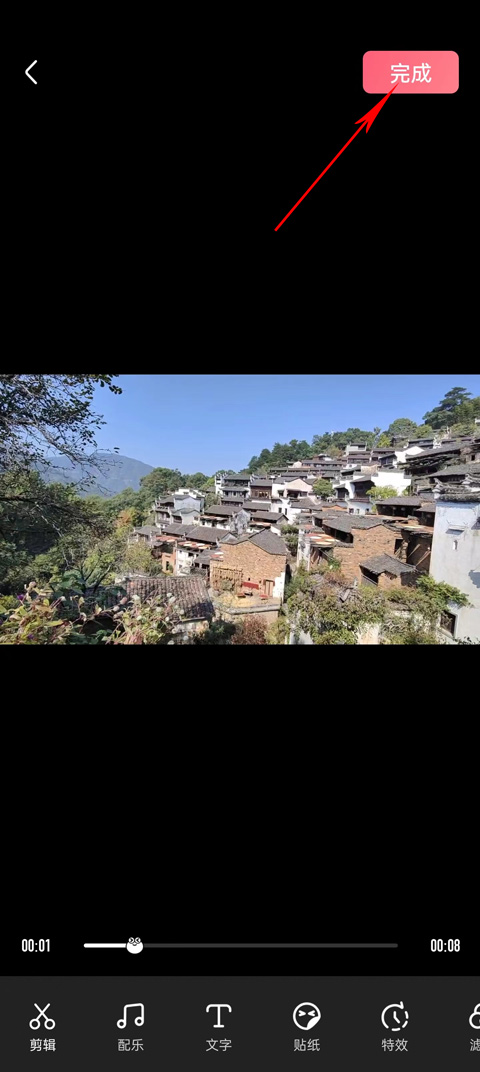 3、把你手机里准备好的视频选上,这时候可以对视频做点简单的编辑,比如剪一下长度、配个背景音乐、加点文字贴纸什么的,弄好了就点右上角的“完成”。
