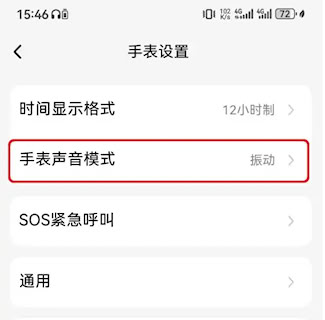2、进了手表设置页面后,往下滑一滑,就能看到一个叫“声音模式”的选项,戳进去。