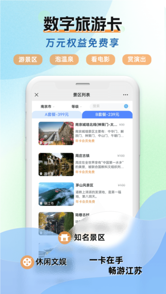 这个“水韵江苏”数字旅游卡是核心,也是全国做得比较早的文旅一卡通。一张卡就打包了江苏13个市超过130个知名景点,5A和4A景区占了快七成,一年里随便去,不限次数。除了逛景点,还能用来看电影、看演出、泡温泉、看展览、坐游轮,把所有权益加起来总价值差不多小一万块。这东西让江苏省内的旅行方便得跟同城玩一样,还拿了文化和旅游部的奖,挺牛的。