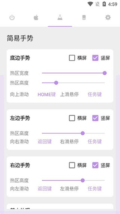 3、软件里手势方案挺多的,这里可以设置一个类似iPhone底部的小横条;
