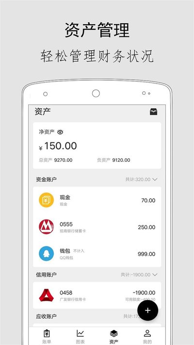 5、你可以将自己名下的各类资产账户,如银行卡、支付宝、微信钱包等,添加到应用中进行统一管理,这样就能随时掌握各个账户的余额变动情况了。