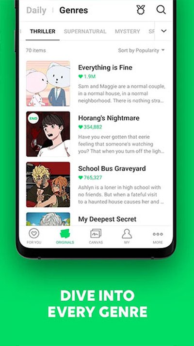 1.Webtoon中文版app就是一个能看世界各地网络漫画的地方。无论你是喜欢看甜甜的恋爱故事、热血的武侠剧情,还是偏爱动作、穿越和搞笑这些热门类型,在Webtoon里基本都能找到合胃口的。你还可以在里面的社区跟同好们聊聊天,分享自己的发现,甚至自己上传作品。偶尔官方会办一些漫画比赛,参加了还有机会拿到不错的奖金。
