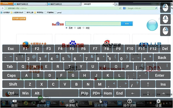 菜单栏里可以调出虚拟键盘,切换鼠标左右键,还有一些参数可以自己调整。