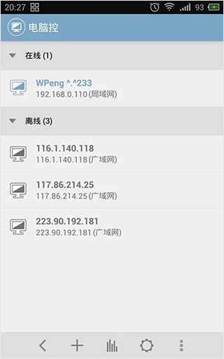 正常情况下,手机会自动扫描局域网里开了电脑端的设备,然后显示在列表里。要是没扫出来,别慌,点屏幕下面的添加按钮,手动输入IP也行。