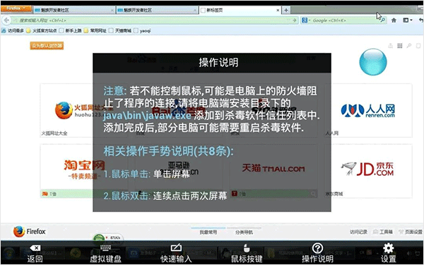 在列表里点一下你的电脑,软件会让你输连接密码,这个密码就是你在电脑端上自己设置的那个。密码输对点确定,就能连上了。第一次用会跳出来一个操作说明,建议还是瞄一眼。