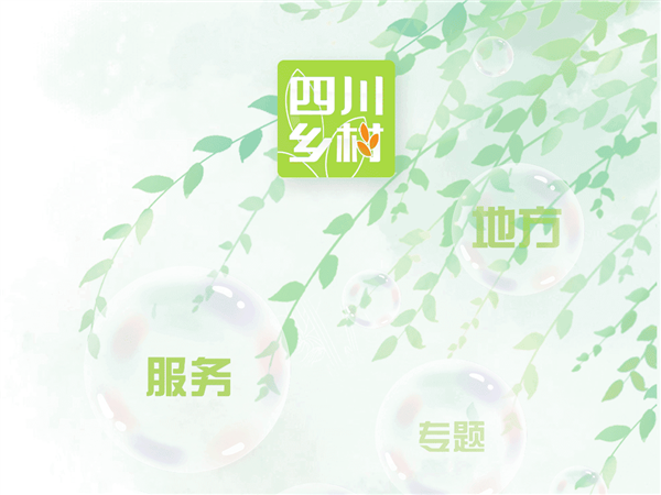 打开应用商店搜索"四川乡村"就能找到这款app,下载安装后首次打开会有简单的功能介绍。界面设计采用了绿色为主色调,给人清新自然的感觉,符合乡村主题。