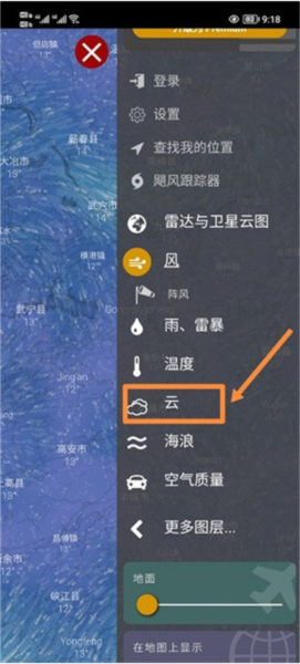 4、选好之后,直接在地图上戳一下你想看的地方,屏幕下面立马就会弹出这个位置详细的云层信息了,看下面这张截图就明白了。