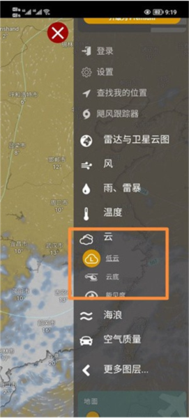 3、进到云的设置里,你就能根据自己的需要,选择看“低云”还是“云底”了。