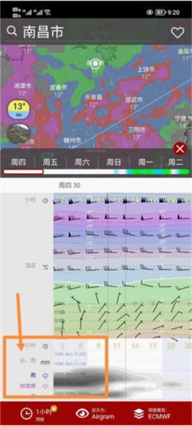 想看专业的?风羽图、不同高度的温度和云层、还有降水量,这些专业图表都有。