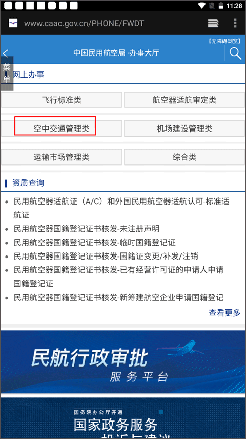 4、这里面分类很细,你就根据自己想查的证书类型来选,比如你想查空管相关的,就点“空中交通管理类”。