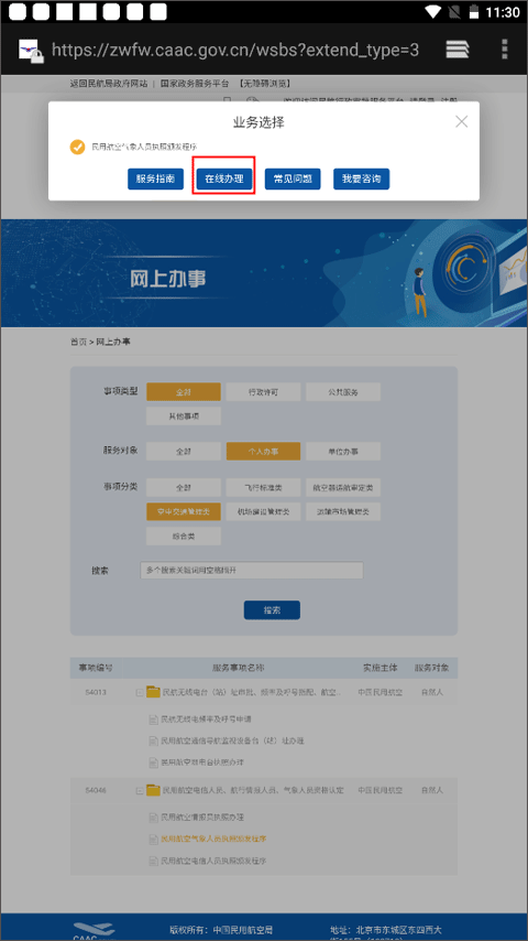 5、最后再根据提示,选一下具体的服务项目、面向的对象之类的,就可以在线查到你需要的信息了。