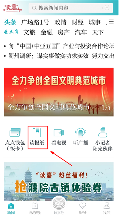 (1)打开登录读嘉APP,点击首页的【读报纸】