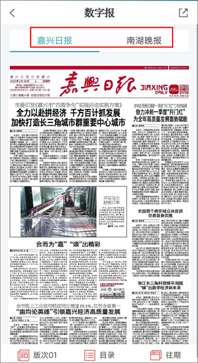 (2)在【数字报】页面,即可看到【嘉兴日报】和【南湖晚报】,用户可根据喜好来选择阅读的报纸