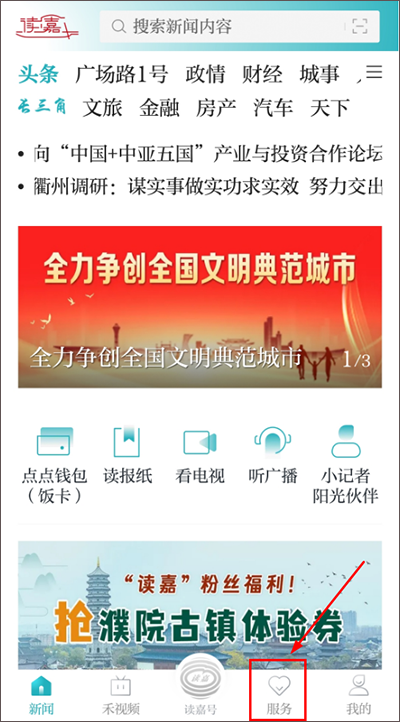 (1)在读嘉app内,点击首页下方【服务】