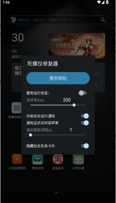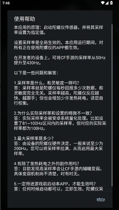 2、设置采样率是全局生效的。本应用运行期间,对所有正在使用陀螺仪的APP都生效。