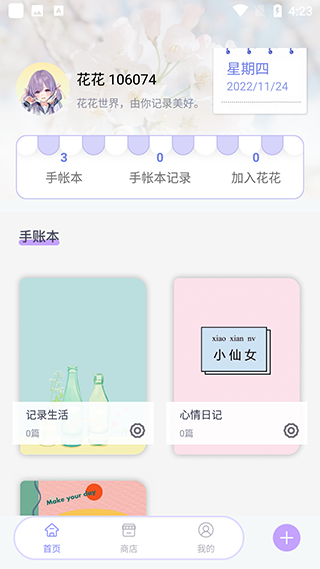 2、主页上会显示你之前创建过的手帐本。老玩家可以直接点进去接着写,要是想开个新的,就戳右下角那个大大的“+”号,操作很直观。