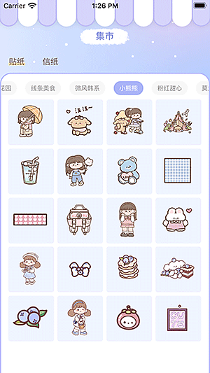 2、精美素材库:素材库简直是个无底洞,我刷了好久都没刷完。贴纸、胶带、咕卡素材多到眼花缭乱,而且都是原创的,风格很多变,重点是还在持续更新,完全不用担心创意枯竭。