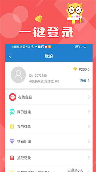 1、打开线上抓娃娃app后完成注册和登录就可以进入首页查看平台里的各类娃娃和商品。