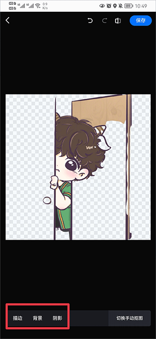 2、从相册中选择需要处理的图片,系统将自动完成抠图,并可自由调整描边、背景与阴影颜色。