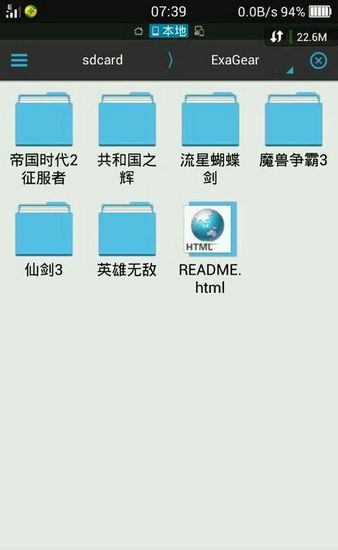 4.下载你想玩的游戏,把游戏解压到手机内存的 `ExaGear` 目录下,同样,没这个文件夹就自己建一个。