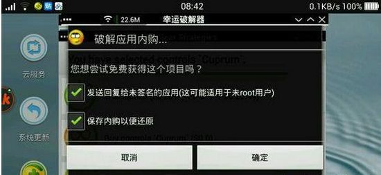 3.下载幸运破解器(注意:版本一定要够新,不然没有移除内购的功能)。打开幸运破解器,点ExaGear,选“破解菜单”,再选第二项。具体操作看下面截图。