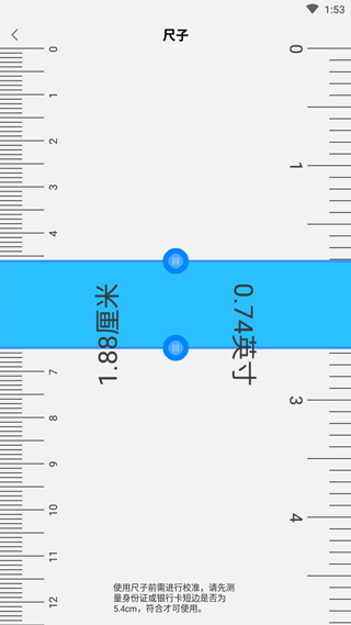 5、比如这个尺子功能,点开就能用,手机屏幕瞬间变身刻度尺,临时救急很方便。
