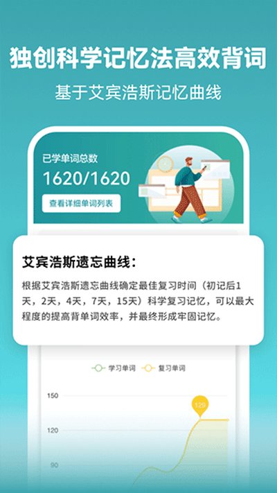 老玩家应该都知道艾宾浩斯遗忘曲线吧?它就是用了这个科学方法来帮你安排复习计划。到了该复习的时候它会提醒你,这样背单词就不容易忘,效率高多了。