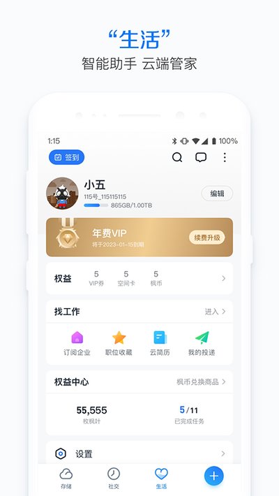 这两者的区别其实一句话就能说明白。115网盘就是个纯粹的云存储工具,功能专一,干净利落。而115生活是个大杂烩,它把网盘作为核心功能给包了进来,然后又往里塞了智能管理、社交圈子和一些生活服务,定位上是个更全面的数字生活平台。一个专精,一个广撒网。